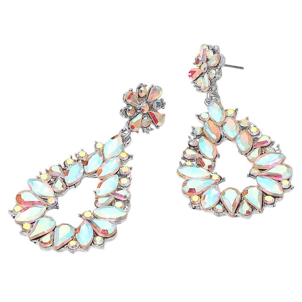 Floral Marquise Teardrop Stone Cluster Accent Dangle Evening Earrings