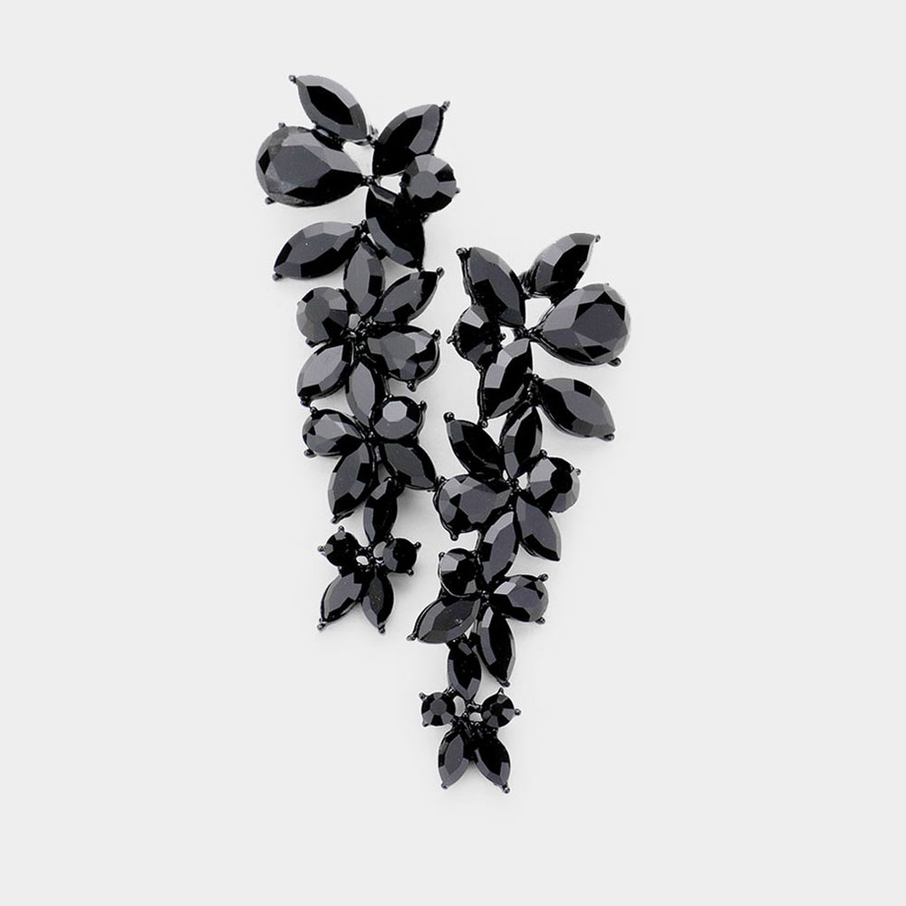 Floral Marquise Teardrop Stone Cluster Accent Dangle Evening Earrings