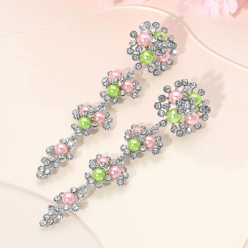 Floral Pearl Rhinestone Cluster Drop Earrings Floral Pearl Rhinestone Cluster Drop Earrings