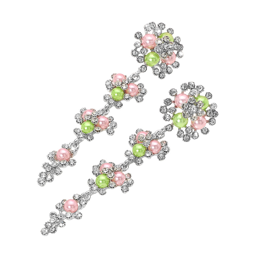 Floral Pearl Rhinestone Cluster Drop Earrings