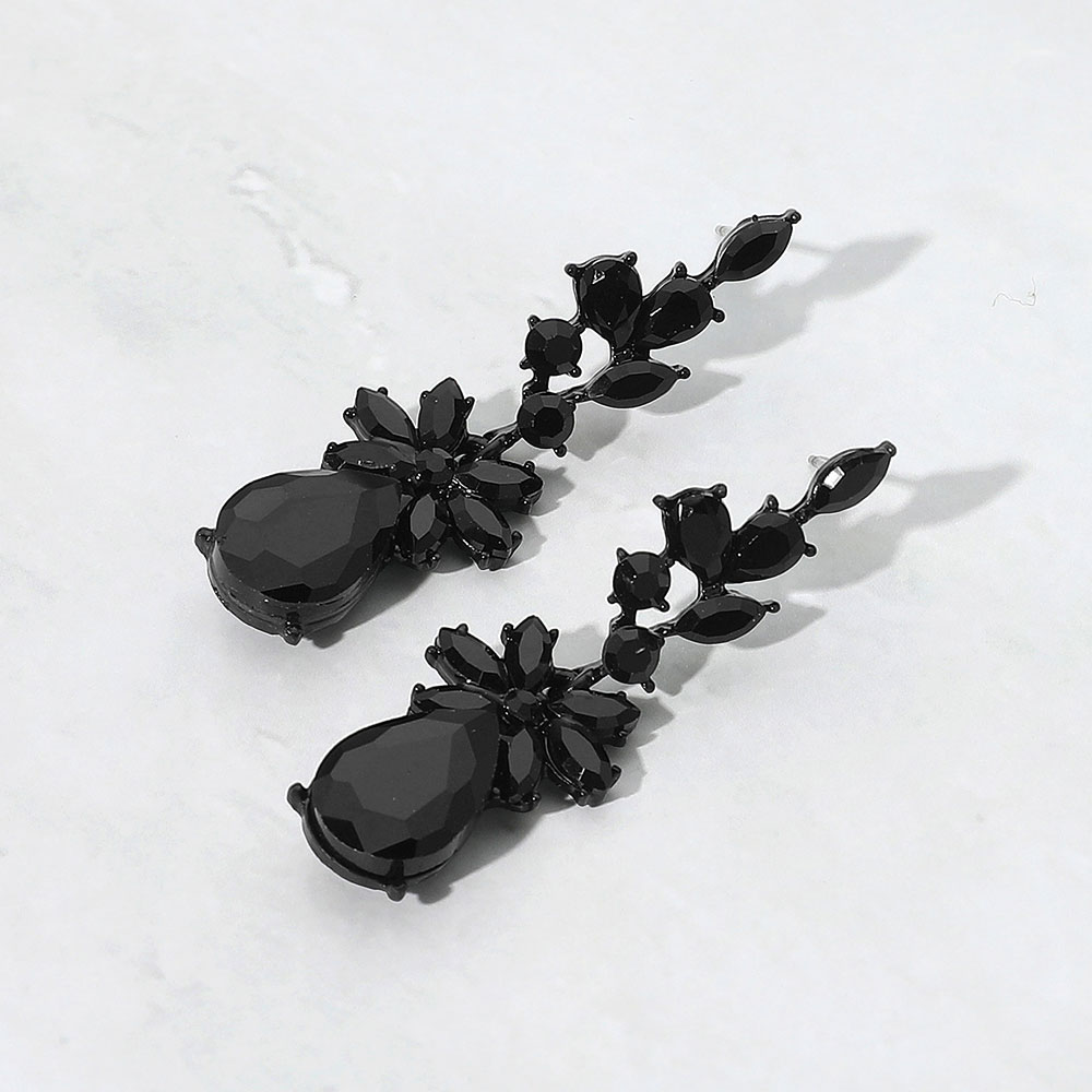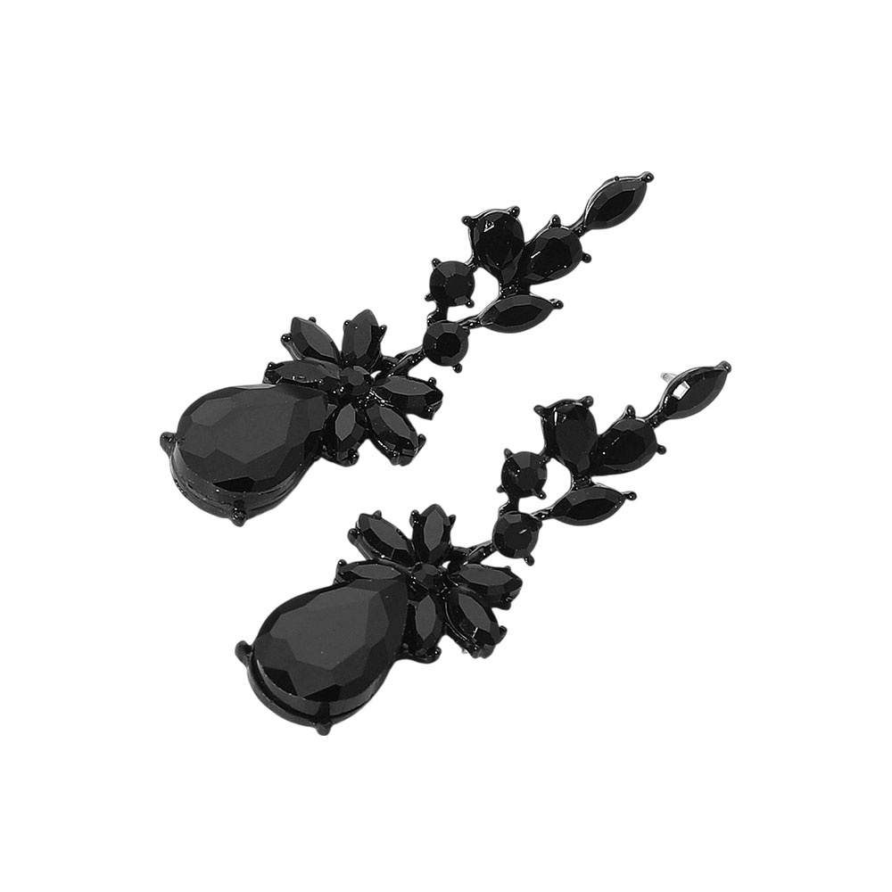 Details • Size : 0.6" X 2" • Post Back • Make a bold impression with these teardrop statement earrings featuring a refined floral cluster design. Perfect for evening events, they bring sophistication and edge to your formal or party attire. • Lead and Nickel Compliant