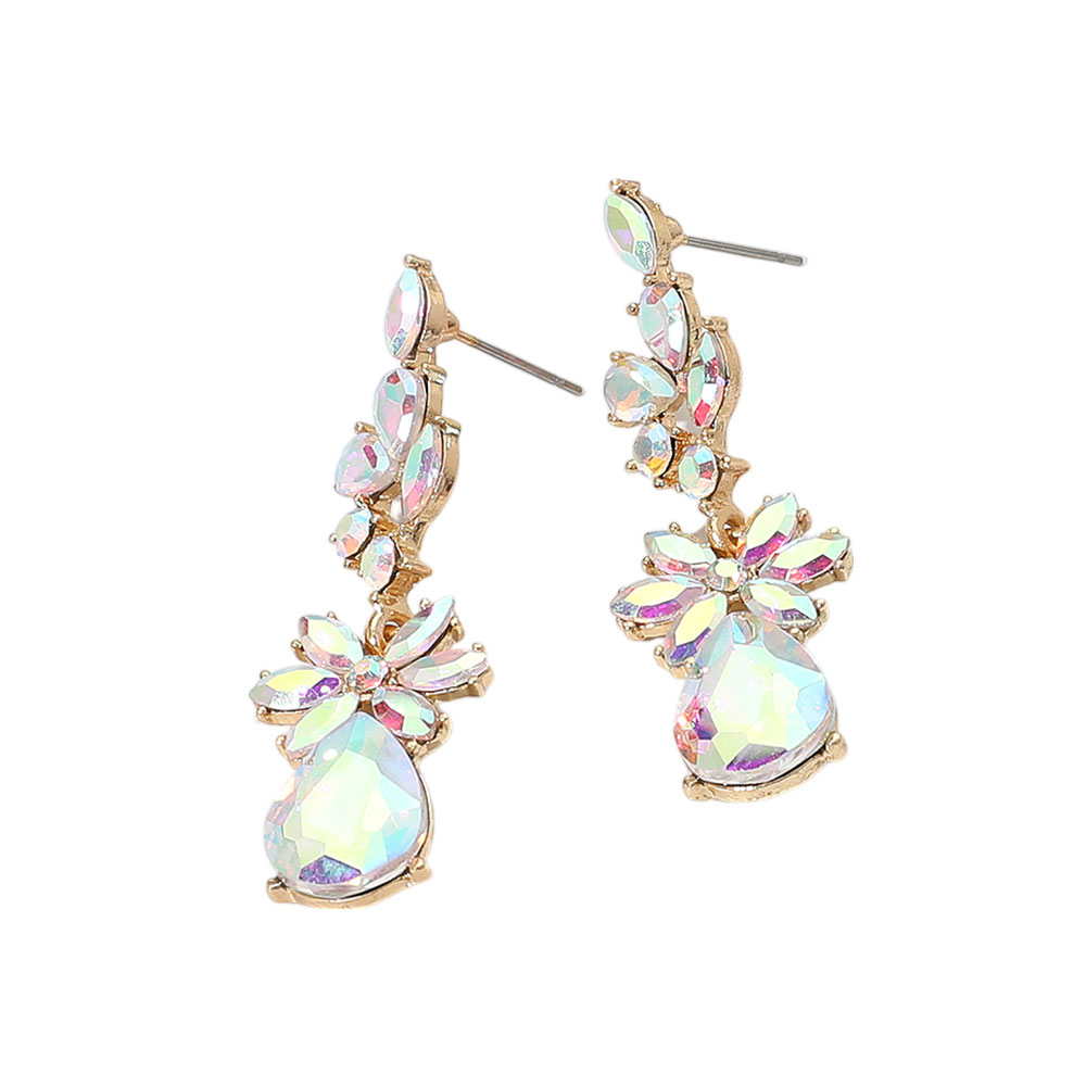 Floral Stone Teardrop Cluster Drop Evening Earrings