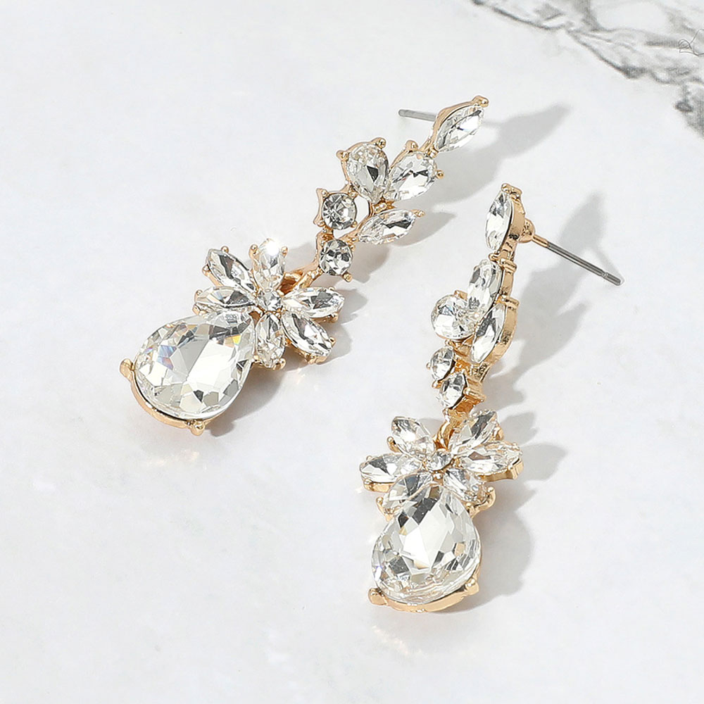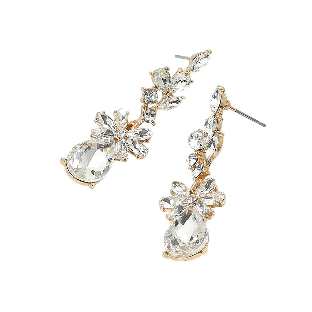 Floral Stone Teardrop Cluster Drop Evening Earrings