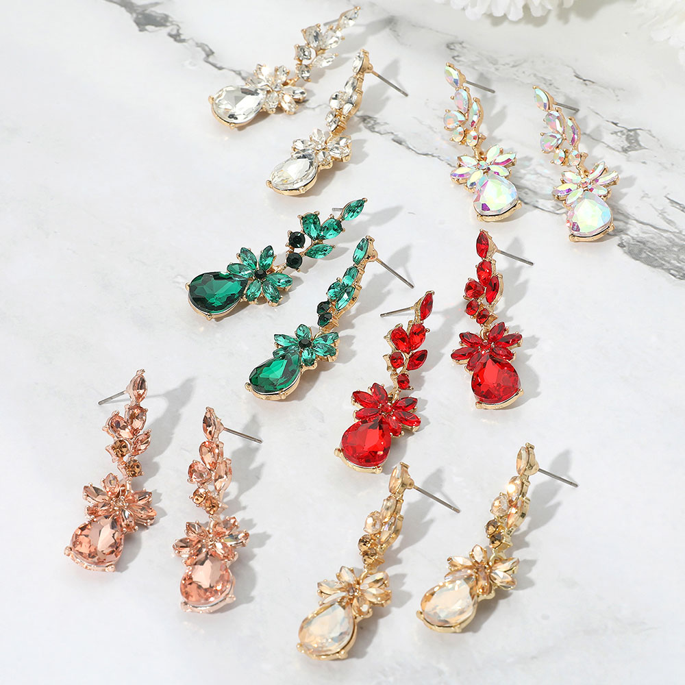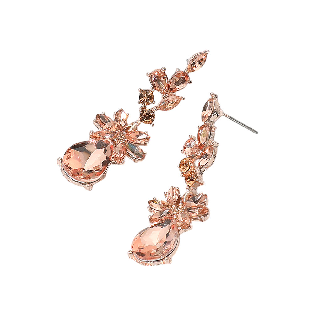 Floral Stone Teardrop Cluster Drop Evening Earrings