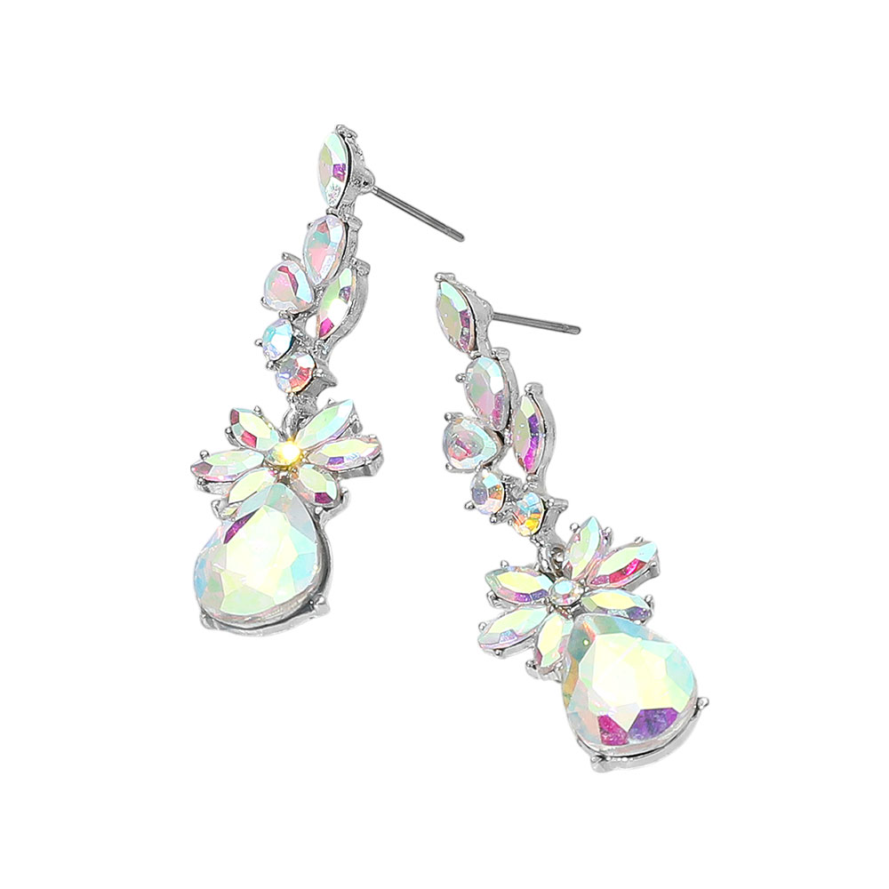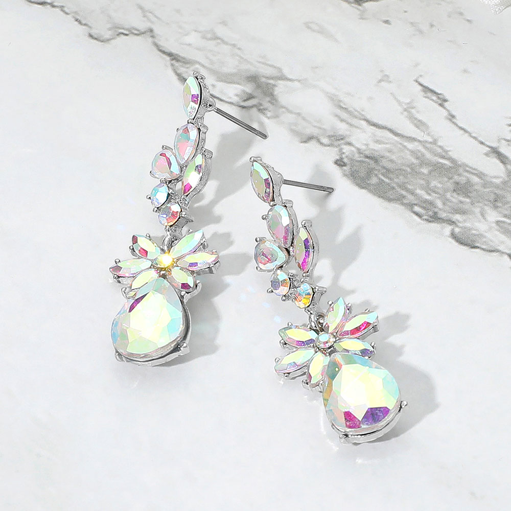 Floral Stone Teardrop Cluster Drop Evening Earrings