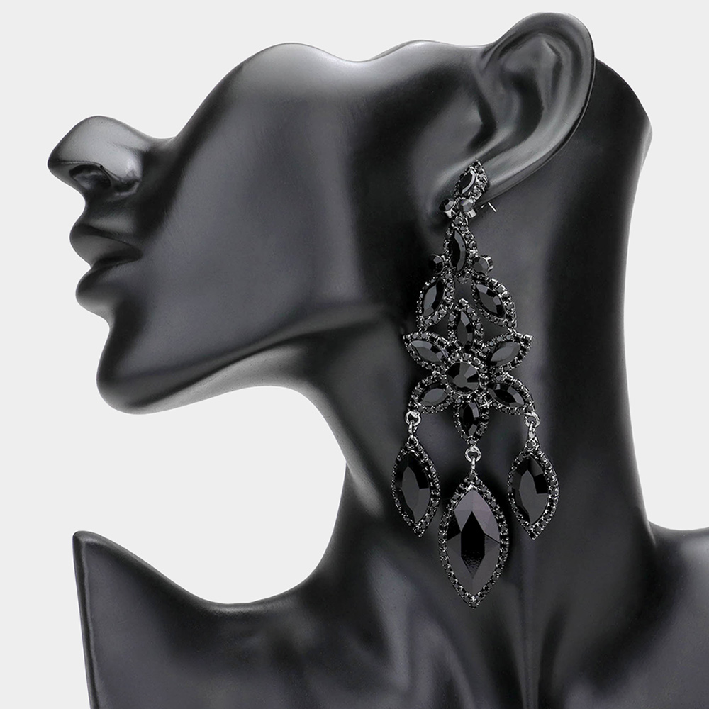 Flower Accented Triple Marquise Stone Link Dangle Evening Earrings