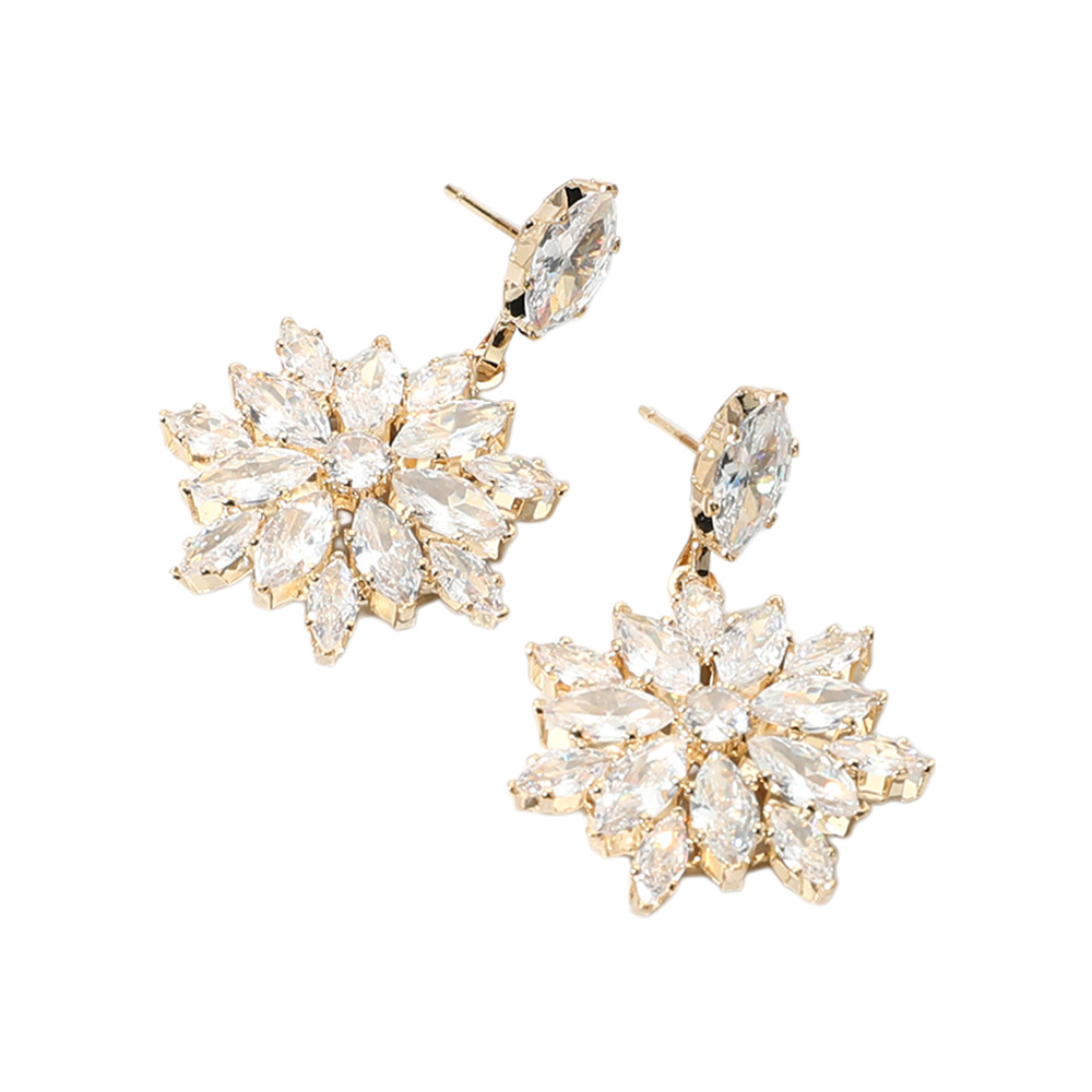 Details • Size : 1.1" X 1.5" • Post Back • Delicate floral drop earrings with marquise-cut crystals arranged in a blooming design. Perfect for weddings, parties, or evening wear. Lightweight and comfortable with a secure stud backing. • Lead and Nickel Compliant • CZ Cubic Zirconia