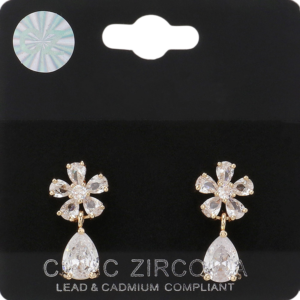 Flower CZ Stone Teardrop Dangle Evening Earrings