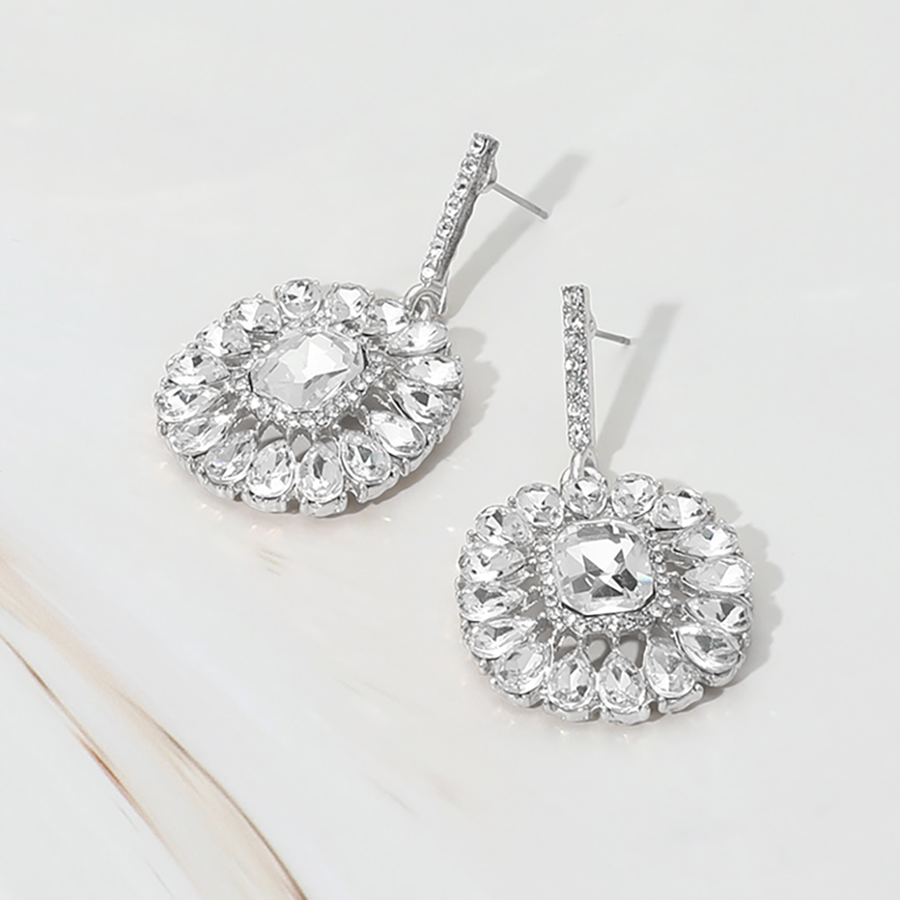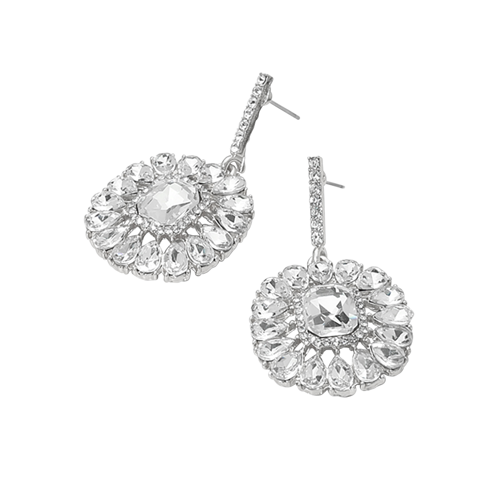 • Make a statement with round crystal drop earrings featuring intricate gemstone detailing. Perfect for parties, weddings, or adding glamour to any evening outfit. Lightweight and eye-catching design.