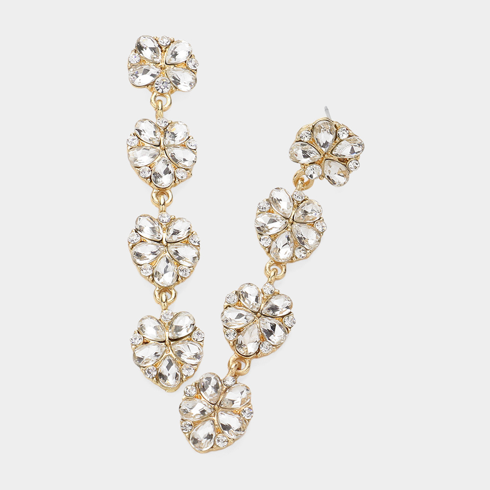 Flower Stone Cluster Link Dropdown Dangle Evening Earrings