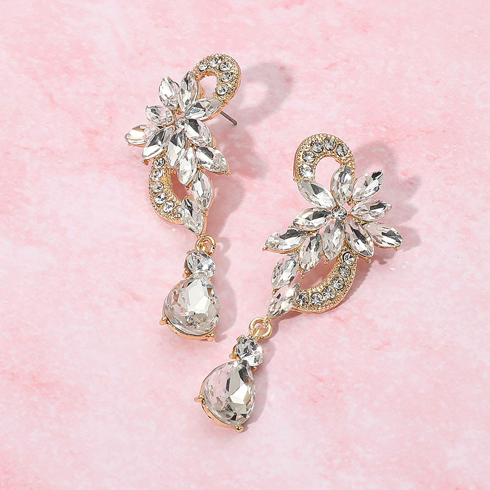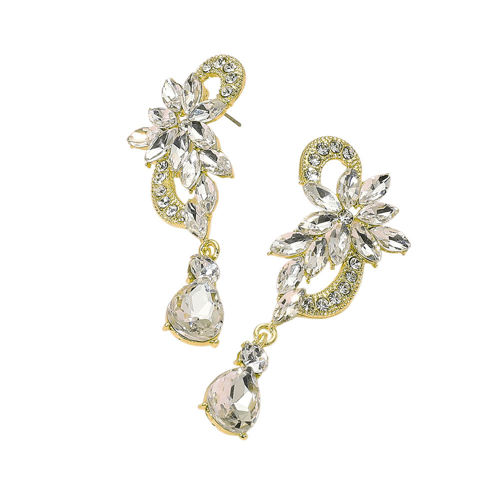 Flower Stone Cluster Teardrop Dangle Evening Earrings
