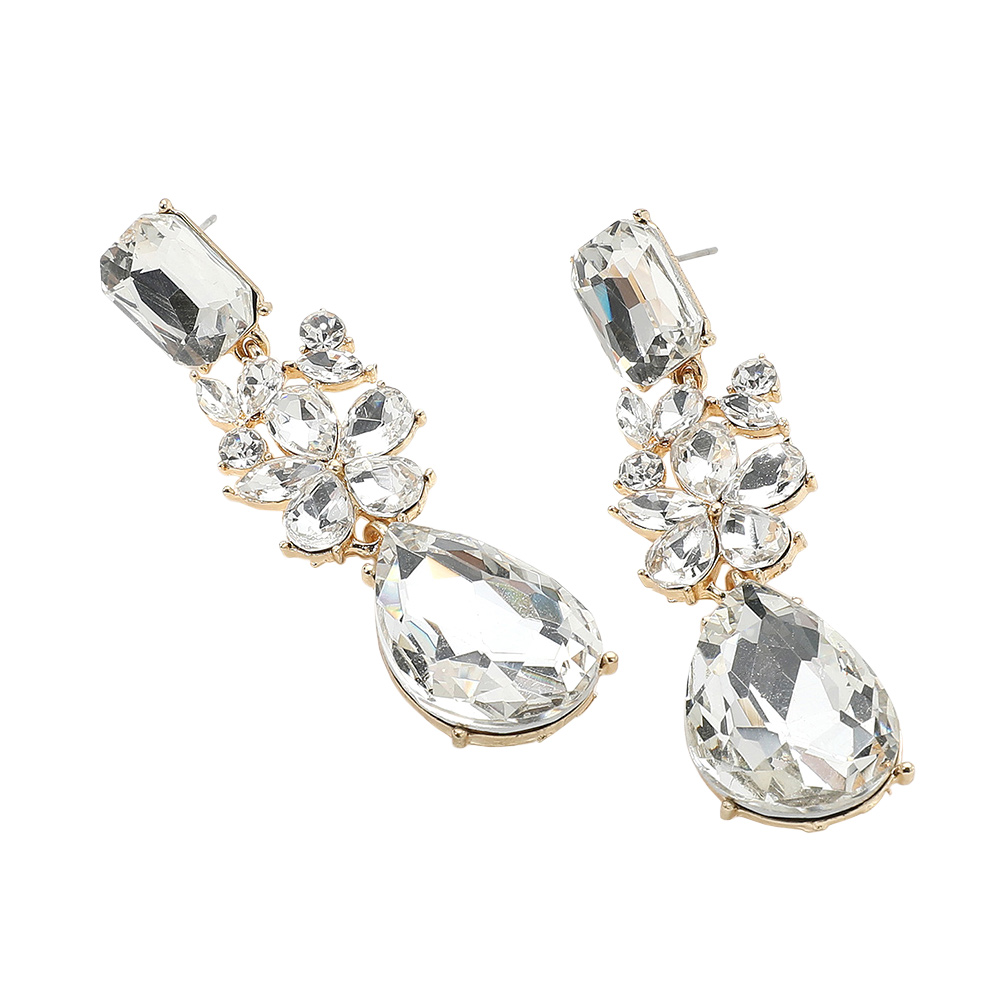 Flower Teardrop Stone Cluster Dangle Evening Earrings
