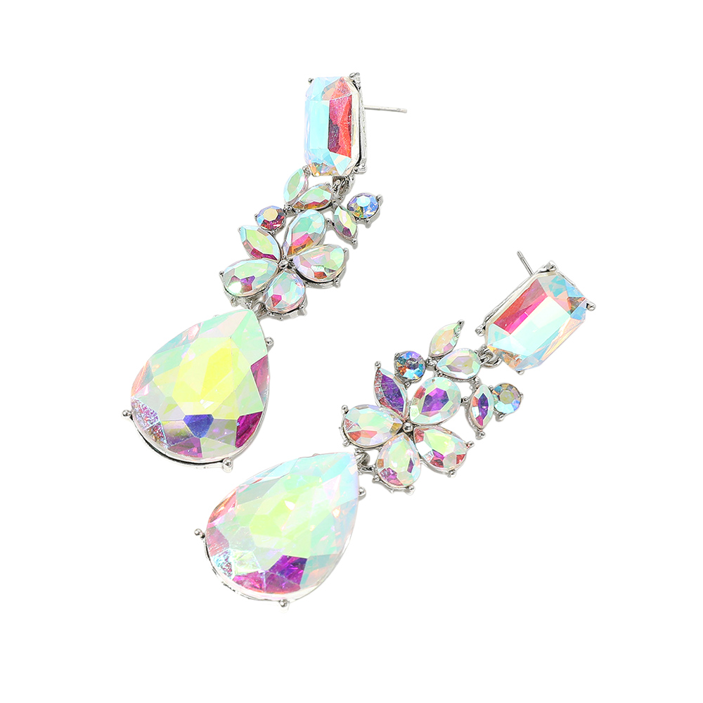 Flower Teardrop Stone Cluster Dangle Evening Earrings