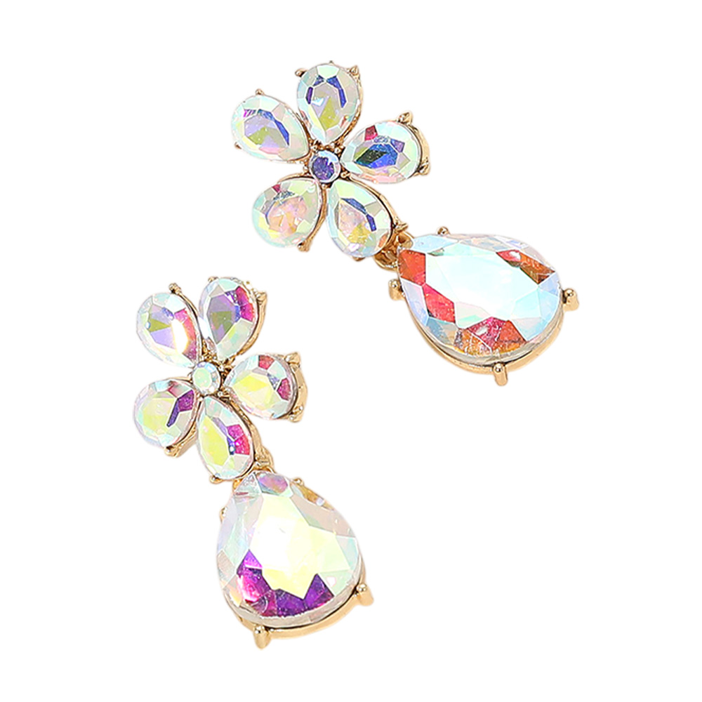 Flower Teardrop Stone Cluster Dangle Evening Earrings