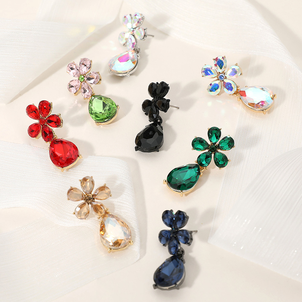 Flower Teardrop Stone Cluster Dangle Evening Earrings Flower Teardrop Stone Cluster Dangle Evening Earrings Flower Teardrop Stone Cluster Dangle Evening Earrings