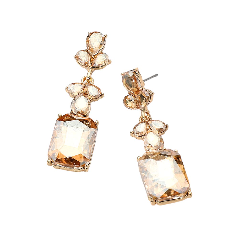 Details • Size : 0.5" X 2" • Post Back • These geometric drop statement earrings feature a bold, faceted design with a cascading arrangement of gem-like shapes. Perfect for adding a touch of sophistication to evening looks, they combine modern elegance with timeless glamour—ideal for special occasions or chic events. • Lead and Nickel Compliant