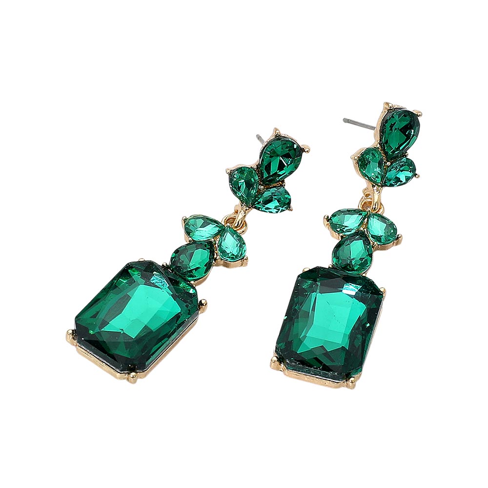 Details • Size : 0.5" X 2" • Post Back • These geometric drop statement earrings feature a bold, faceted design with a cascading arrangement of gem-like shapes. Perfect for adding a touch of sophistication to evening looks, they combine modern elegance with timeless glamour—ideal for special occasions or chic events. • Lead and Nickel Compliant