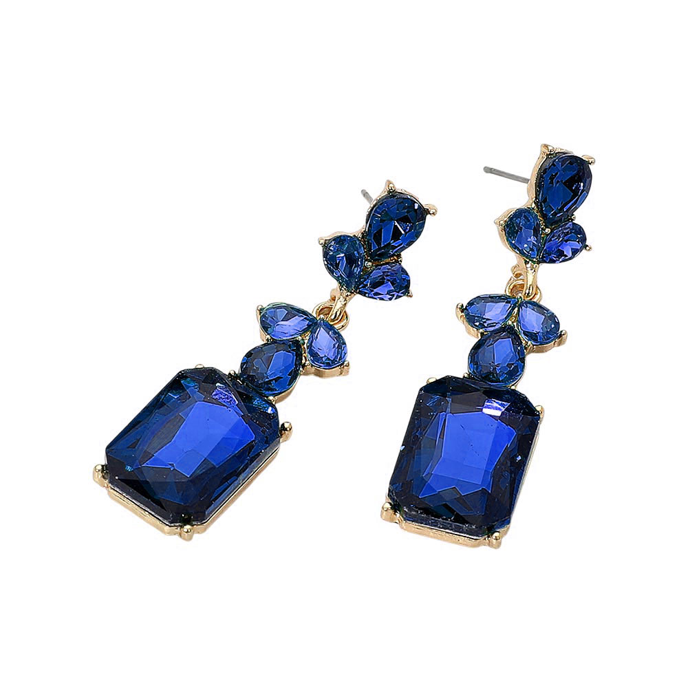 Details • Size : 0.5" X 2" • Post Back • These geometric drop statement earrings feature a bold, faceted design with a cascading arrangement of gem-like shapes. Perfect for adding a touch of sophistication to evening looks, they combine modern elegance with timeless glamour—ideal for special occasions or chic events. • Lead and Nickel Compliant