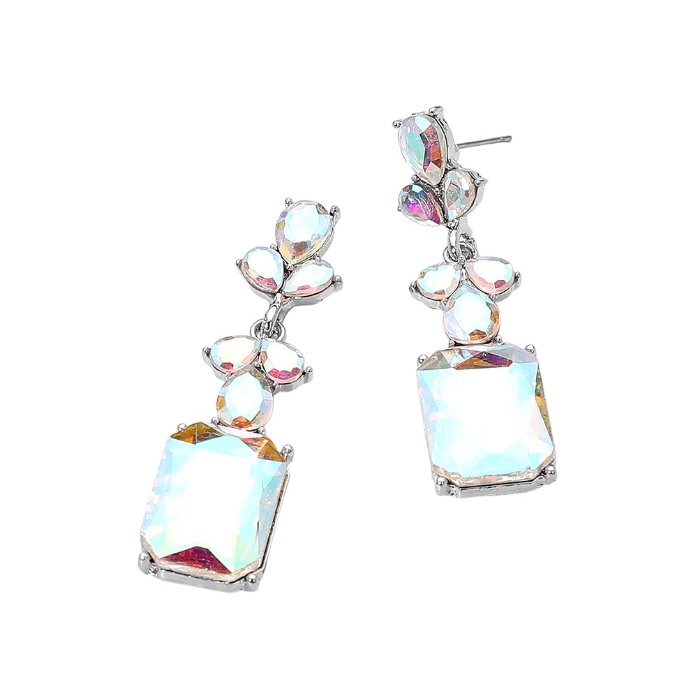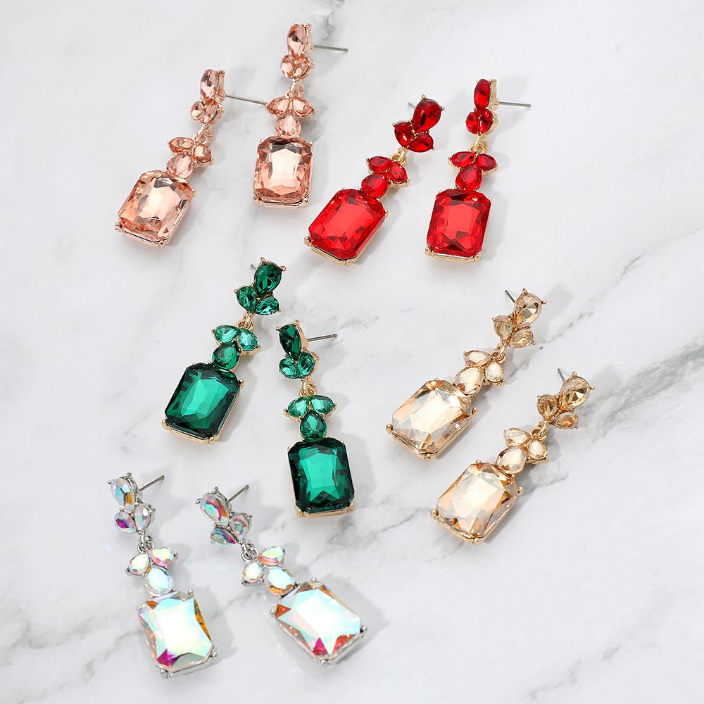 Details • Size : 0.5" X 2" • Post Back • These geometric drop statement earrings feature a bold, faceted design with a cascading arrangement of gem-like shapes. Perfect for adding a touch of sophistication to evening looks, they combine modern elegance with timeless glamour—ideal for special occasions or chic events. • Lead and Nickel Compliant
