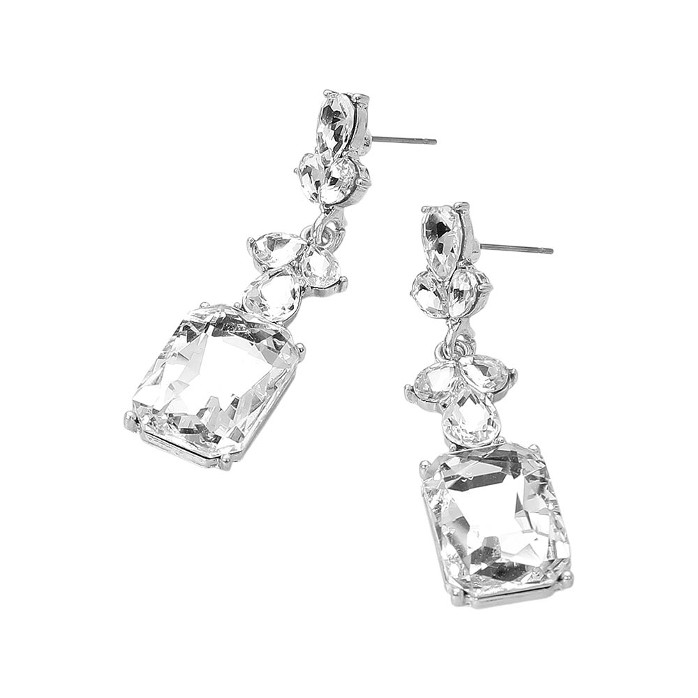 Marquise Round Stone Cluster Open Rectangle Dangle Evening Earrings