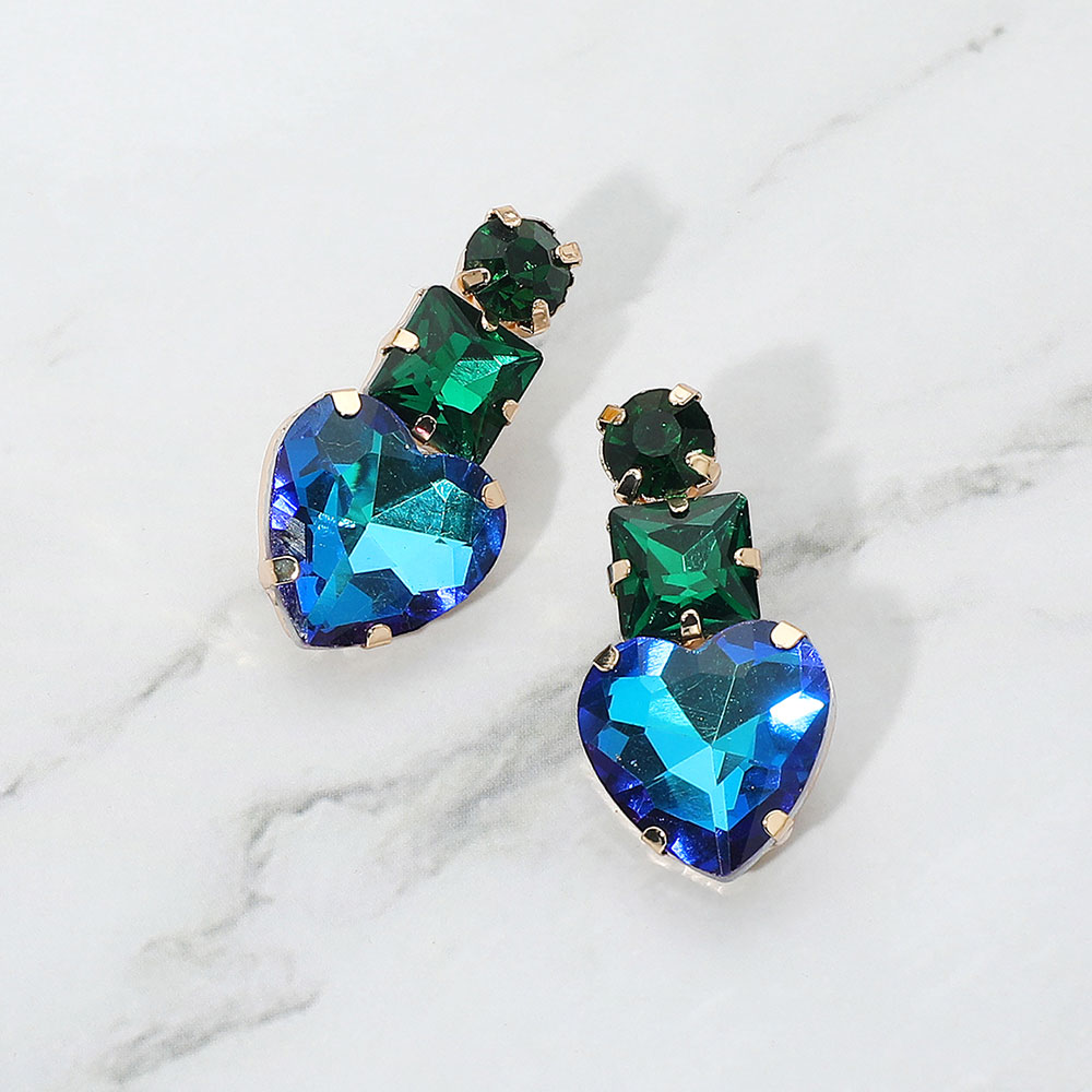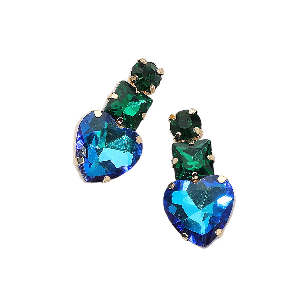 • Stylish drop earrings featuring a heart-shaped crystal and bold geometric accents. A dazzling accessory that adds glamour and charm to both casual and formal outfits.
