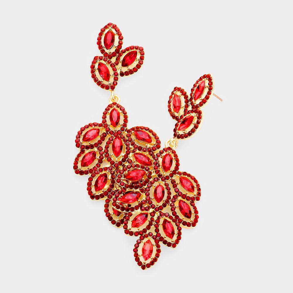 Glass Crystal Marquise Cluster Drop Evening Earrings