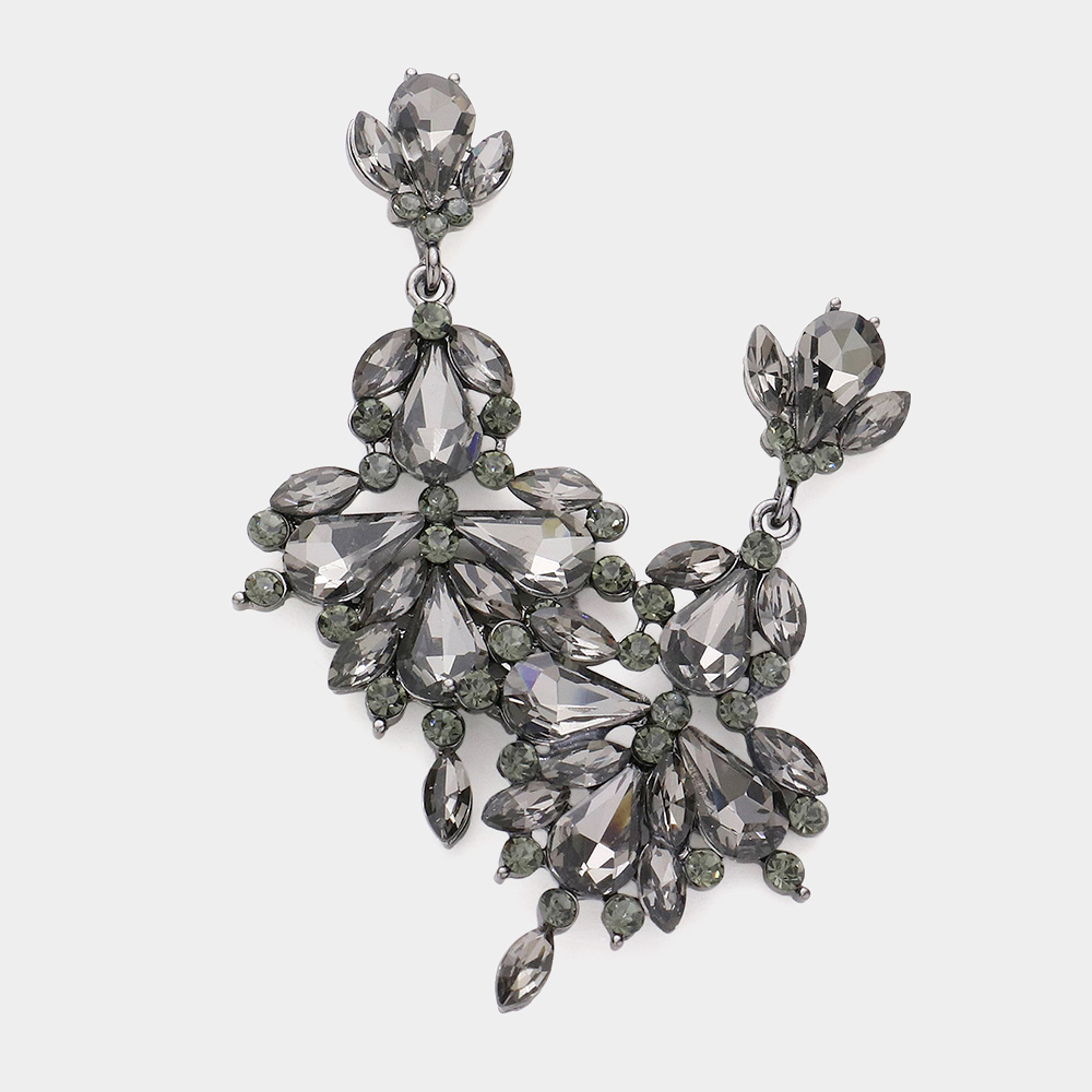 Teardrop CZ Stone Cluster Chandelier Dangle Evening Earrings
