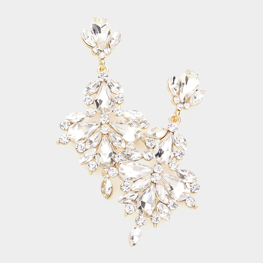Gold Dipped CZ Stone Heart Drop Hoop Earrings