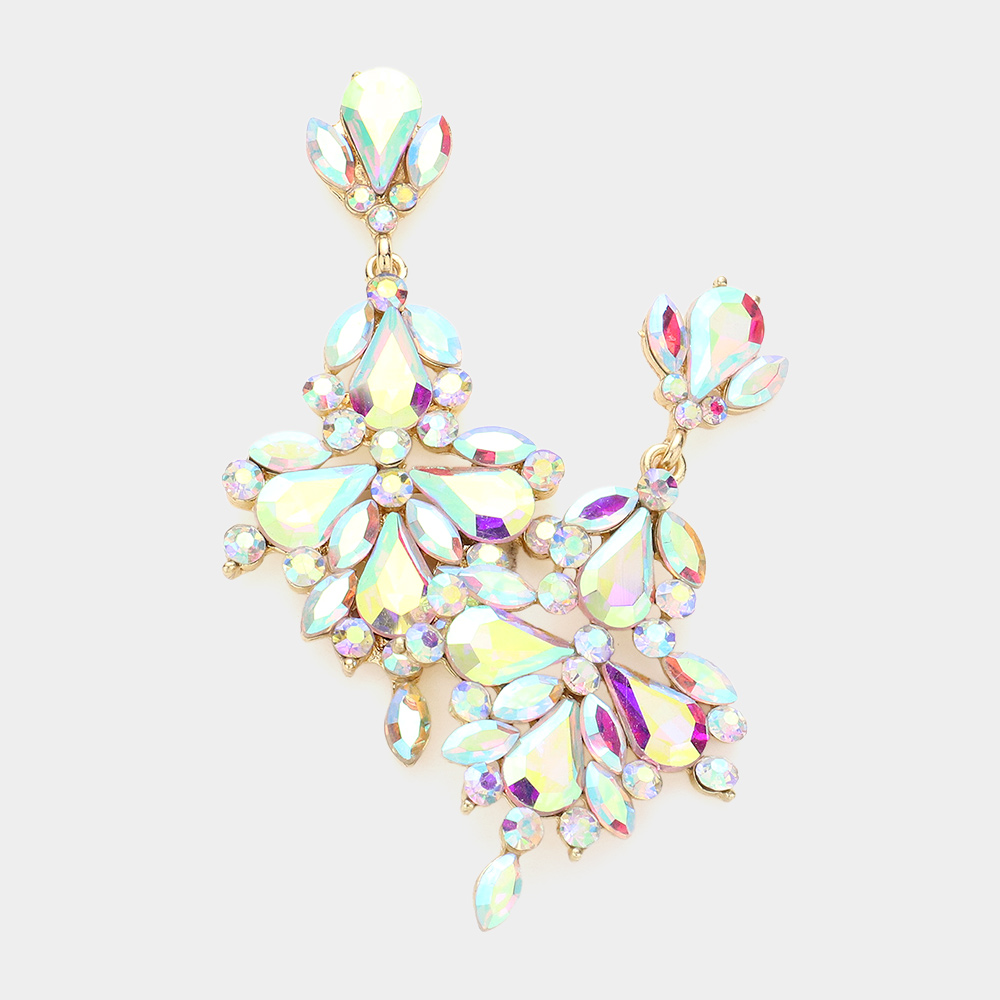 Teardrop Rhinestone Cluster Pointed Dangle Evening Earrings