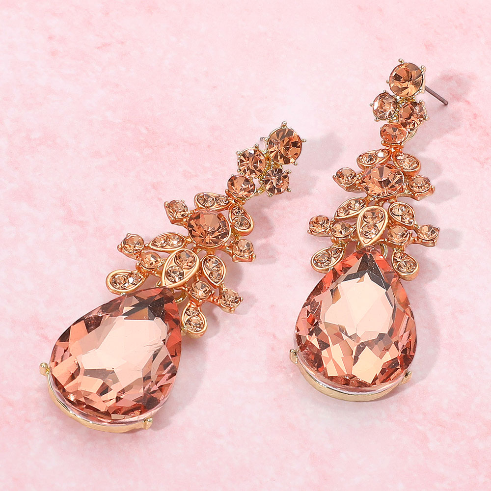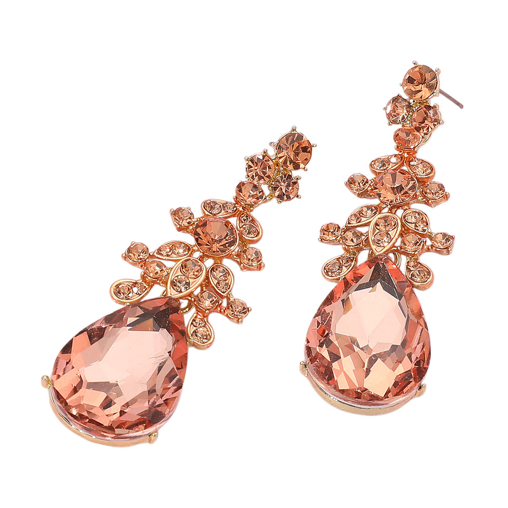 Glass Crystal Teardrop Accented Evening Earrings