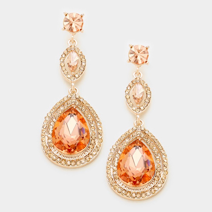 Glass Crystal Teardrop Evening Earrings