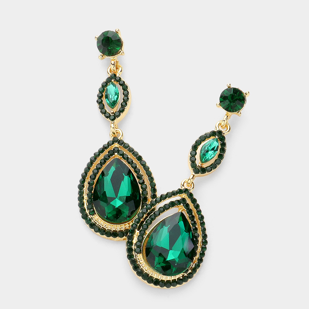 Marquise Stone Embellished Teardrop Stone Cluster Dangle Evening Earrings