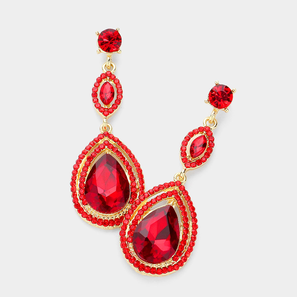 Glass Crystal Teardrop Evening Earrings