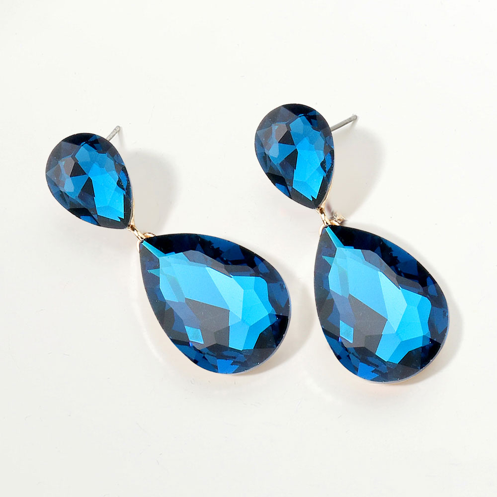 • Glamorous faceted teardrop dangle earrings featuring a radiant crystal-cut design that catches the light beautifully. Lightweight and sophisticated, these statement earrings elevate evening outfits, weddings, or special occasions with timeless elegance and refined sparkle.