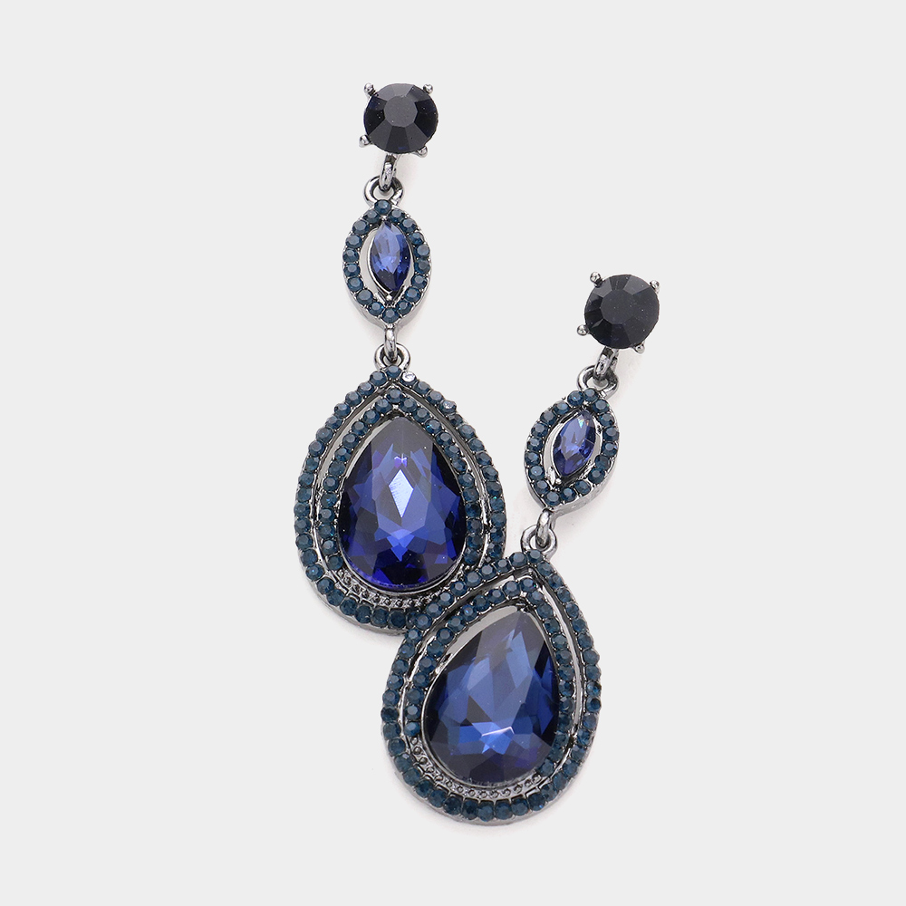 Marquise Stone Cluster Drop Dangle Evening Earrings