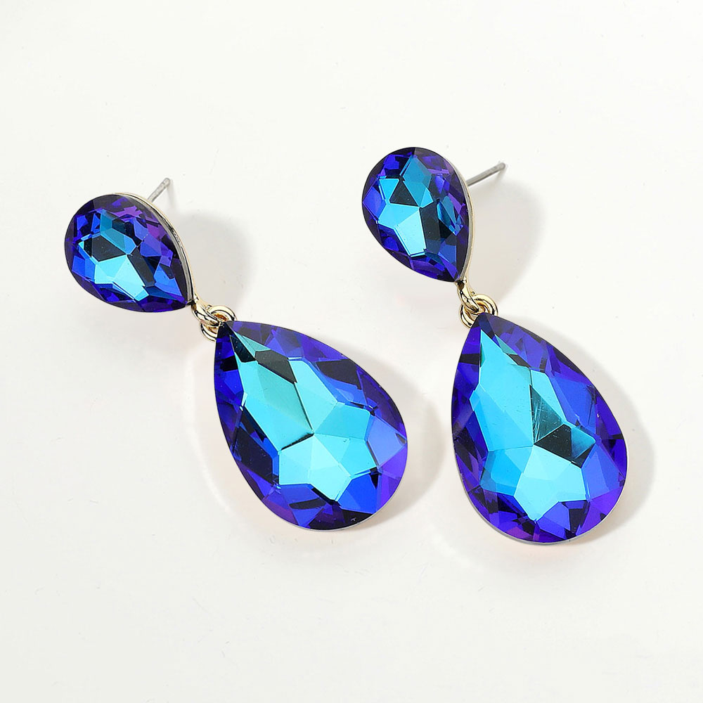 Glass Crystal Teardrop Evening Earrings