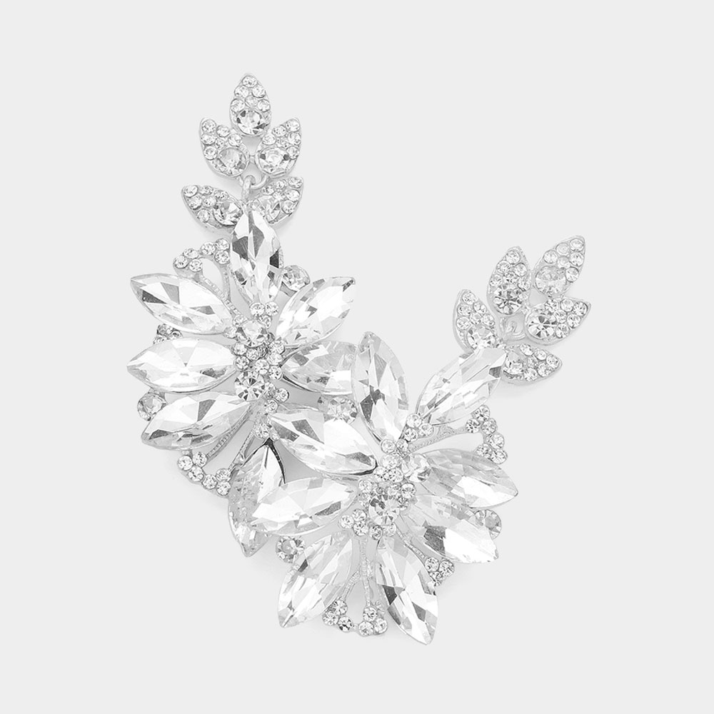 Teardrop Stone Pointed Rhinestone Paved Flower Embellished Necklace