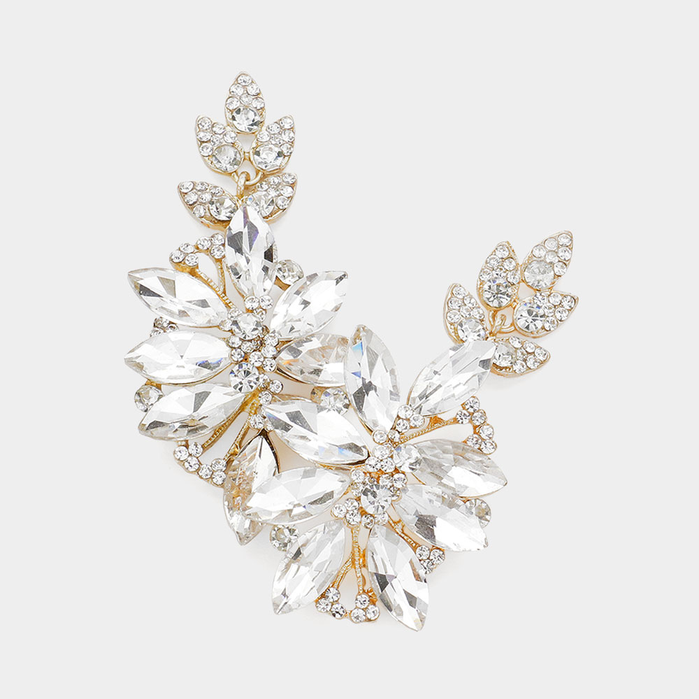 Teardrop Oval Marquise Stone Cluster Embellished Evening Earrings