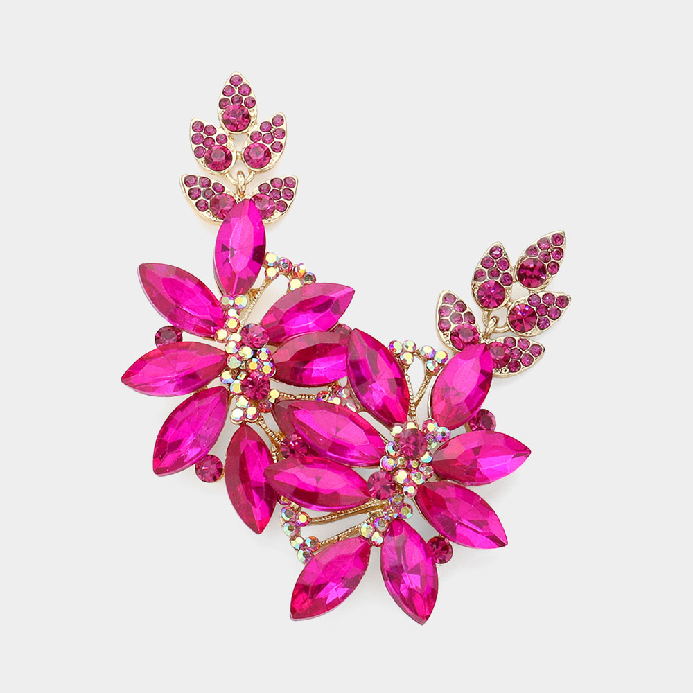 Glass Crystal Teardrop Floral Stretch Evening Bracelet