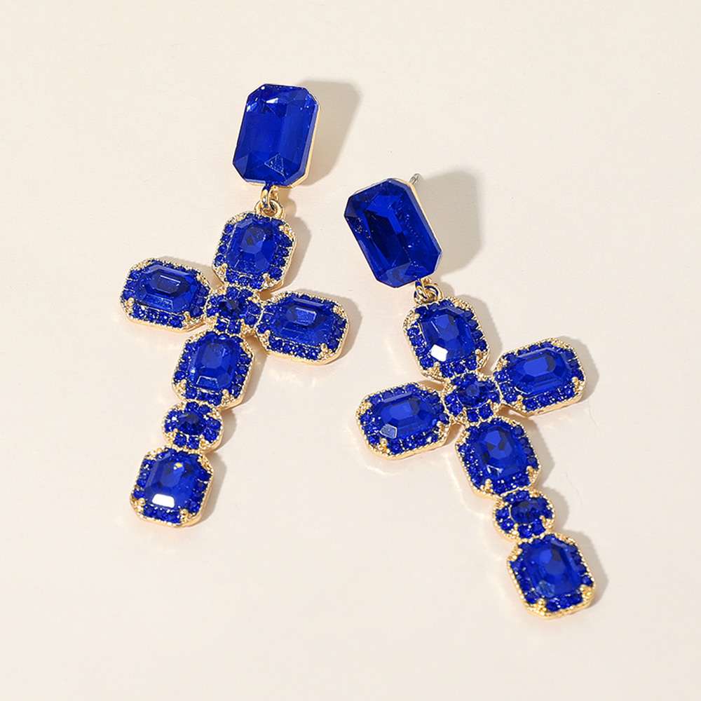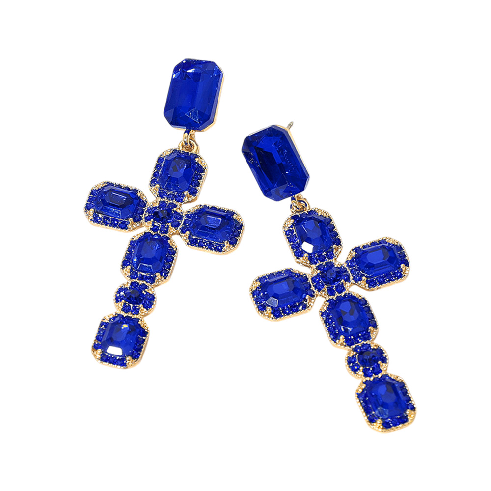 Glass Stone Cluster Cross Dangle Evening Earrings