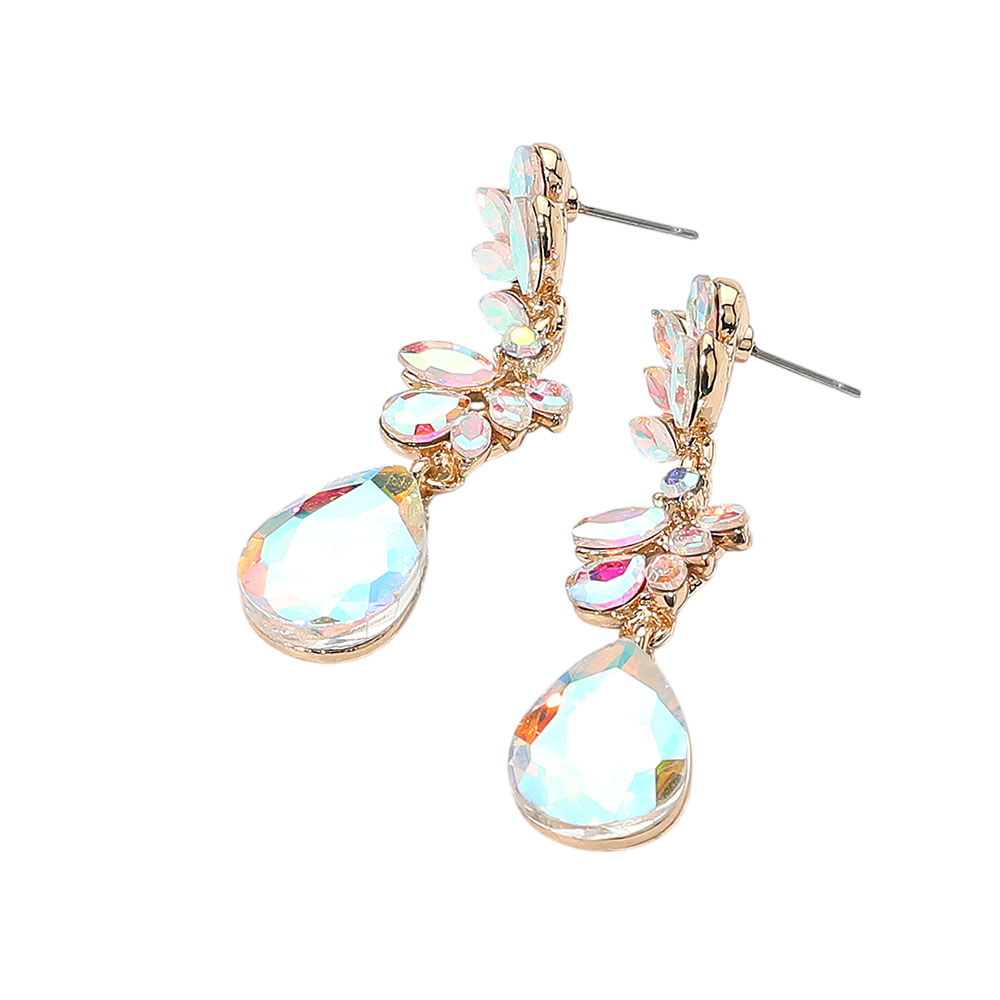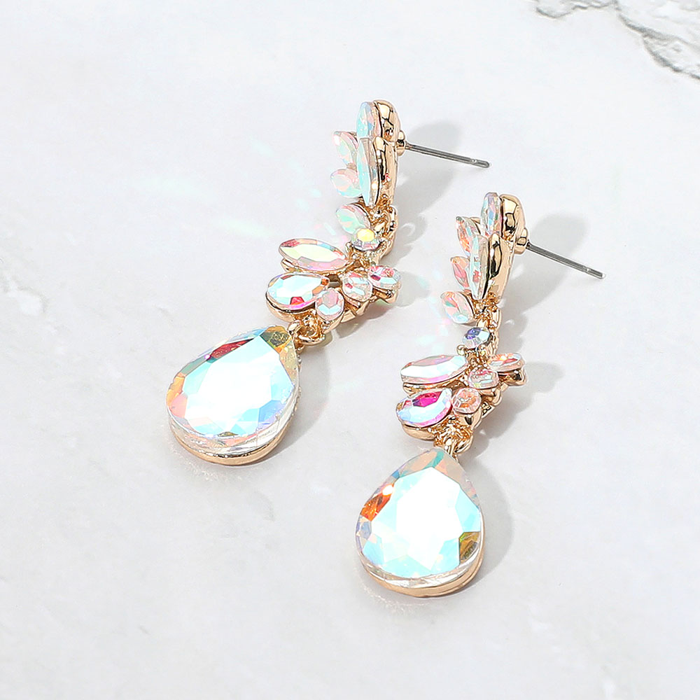 Glass Stone Cluster Embellished Drop Dangle Evening Earrings