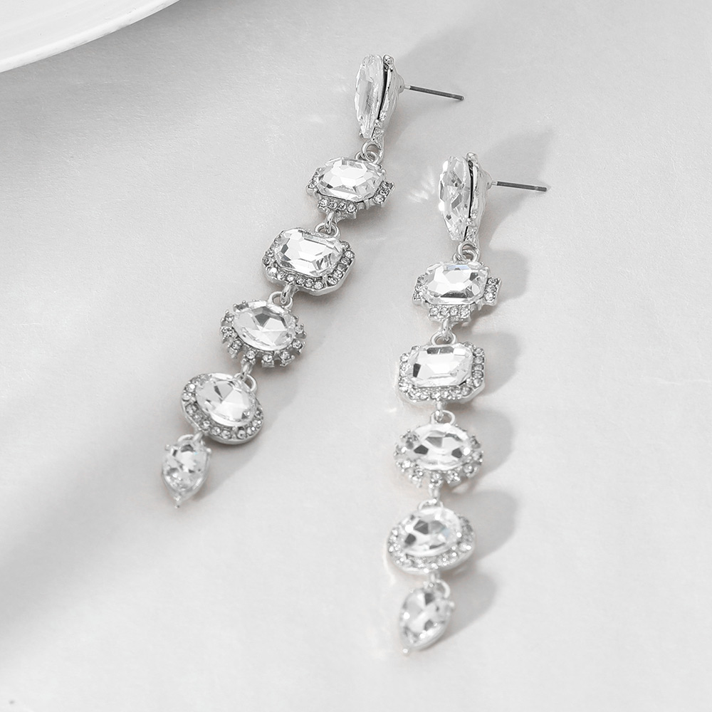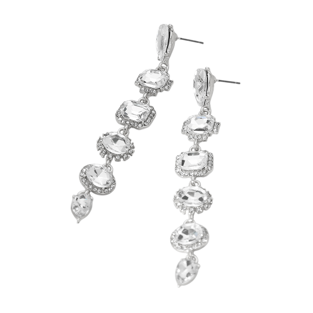 Glass Stone Cluster Link Dropdown Evening Earrings