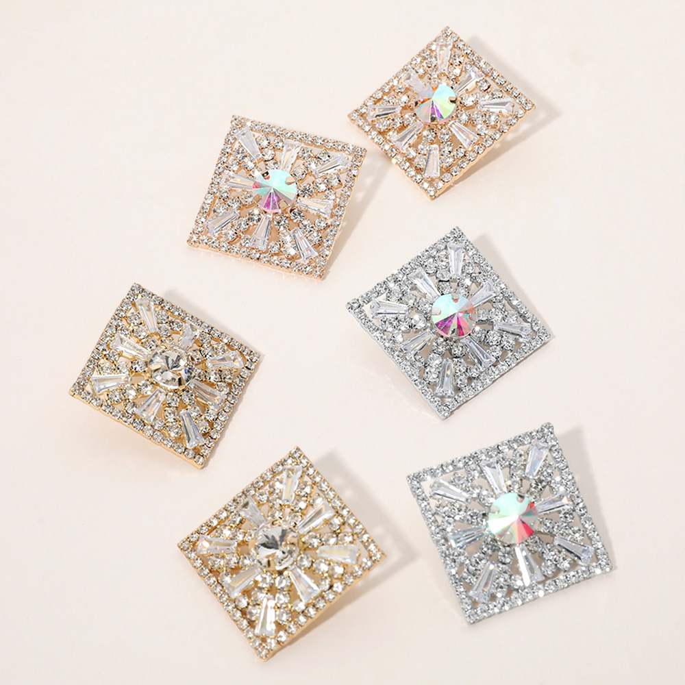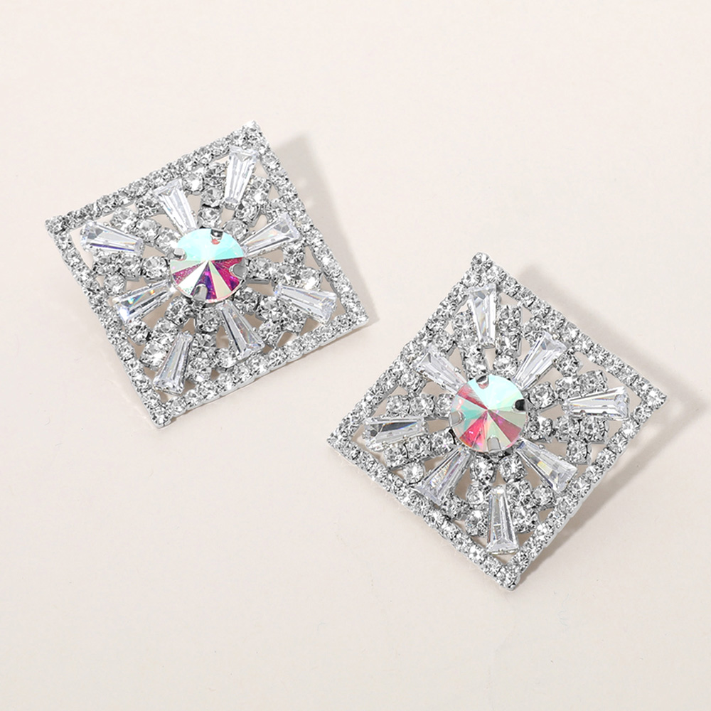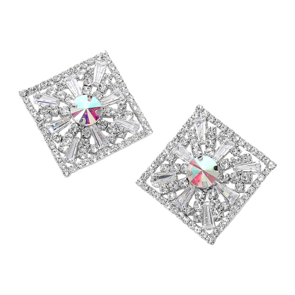 Glass Stone Embellished Diamond Frame Evening Earrings