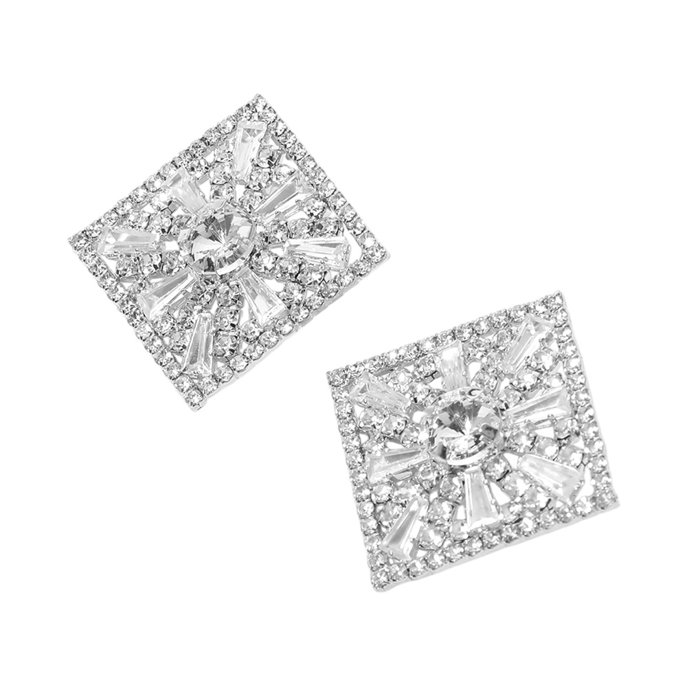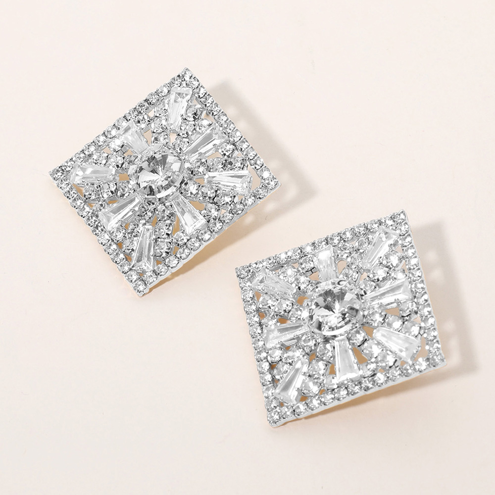 Glass Stone Embellished Diamond Frame Evening Earrings