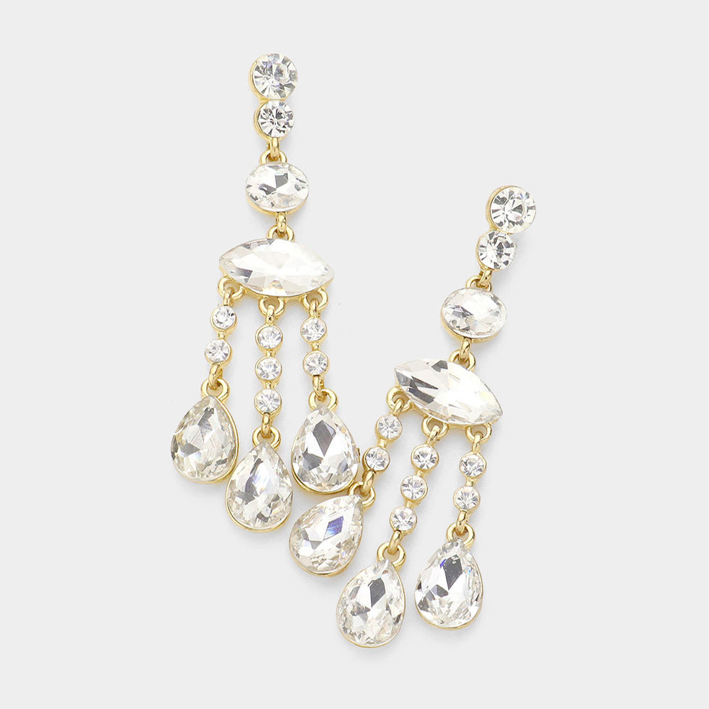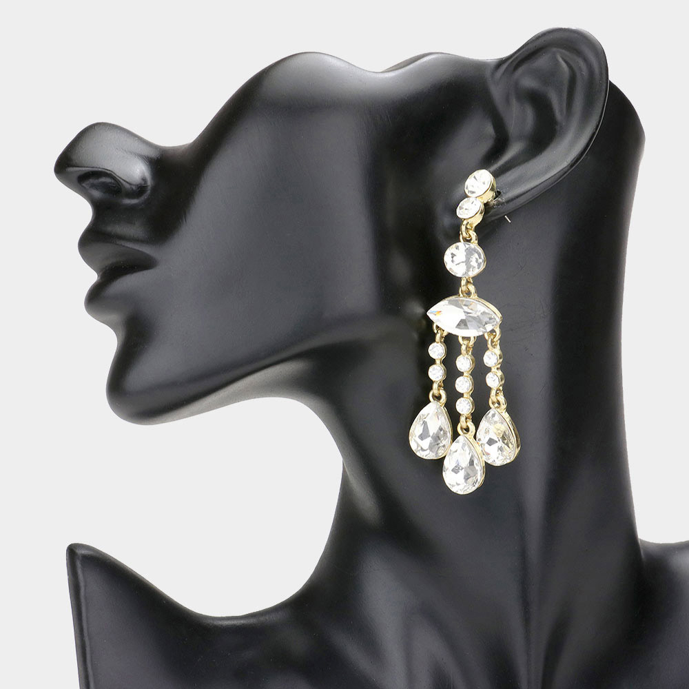 Teardrop Stone Embellished Chandelier Evening Earrings