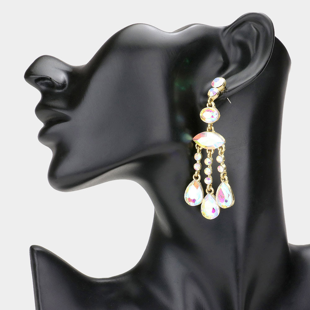 Glass Crystal Double Teardrop Clip on Evening Earrings