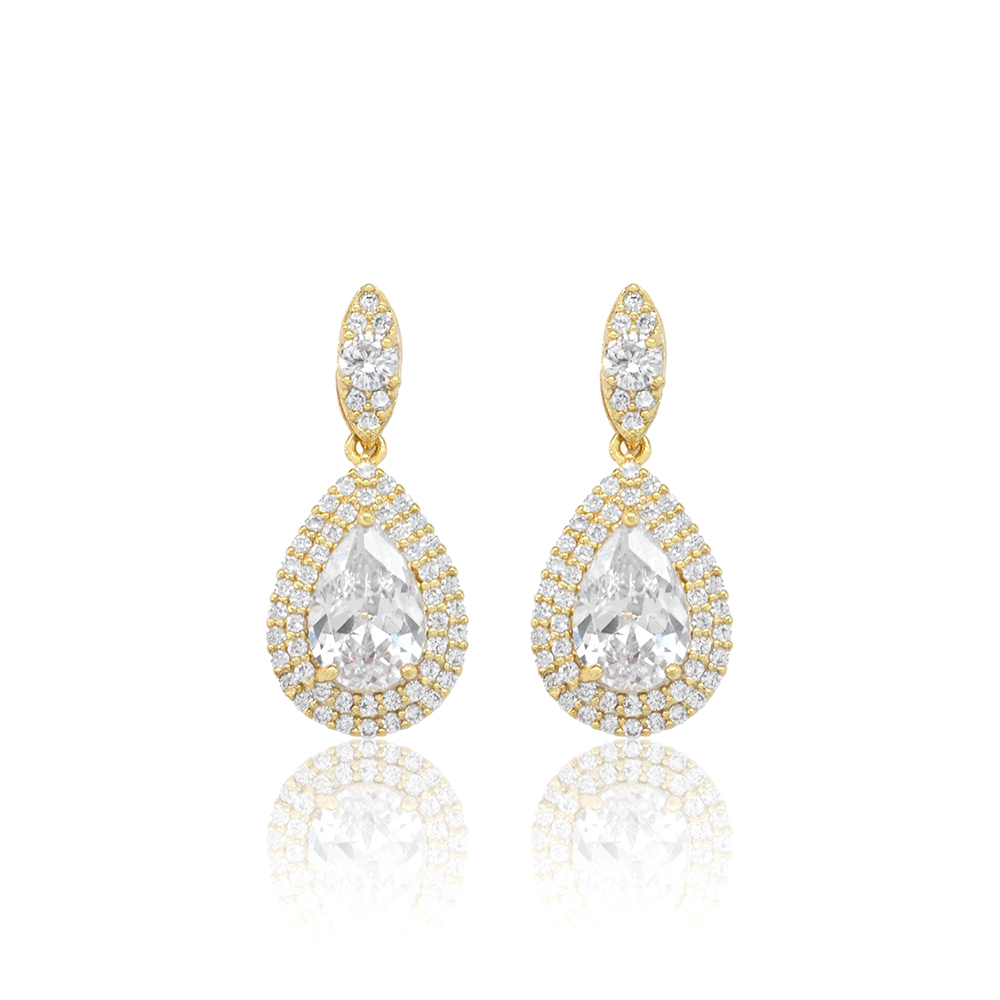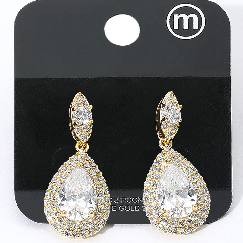 Gold Dipped CZ Marquise Teardrop Dangle Evening Earrings