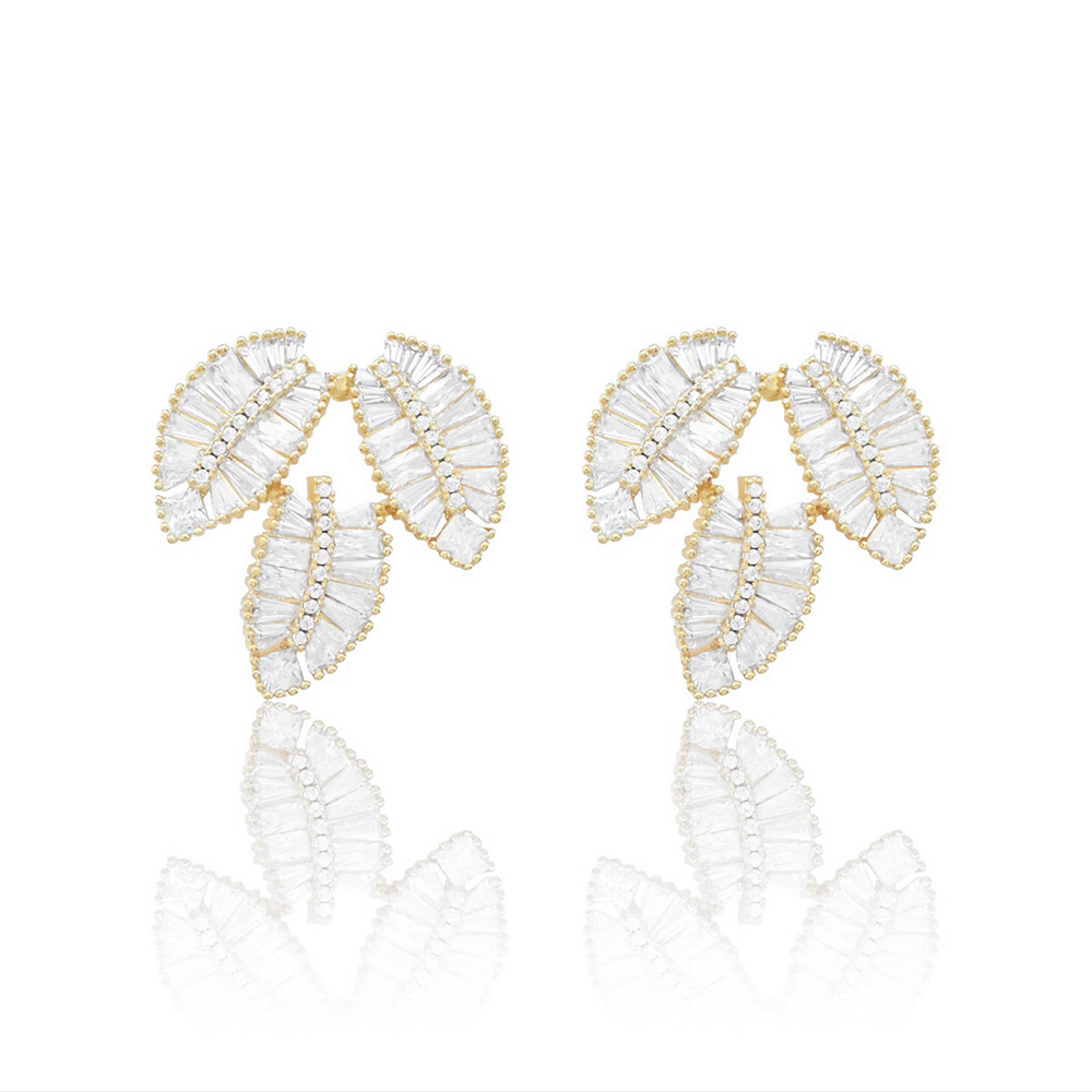 Gold Dipped CZ Stone Embellished Leaves Evening Earrings