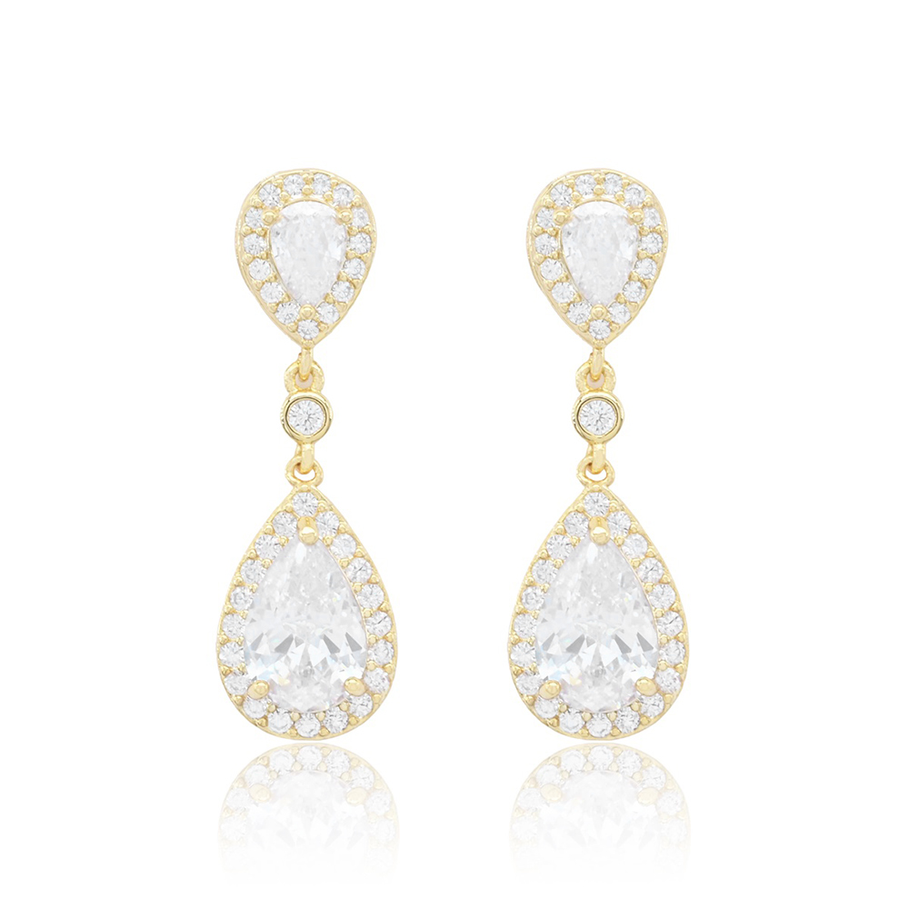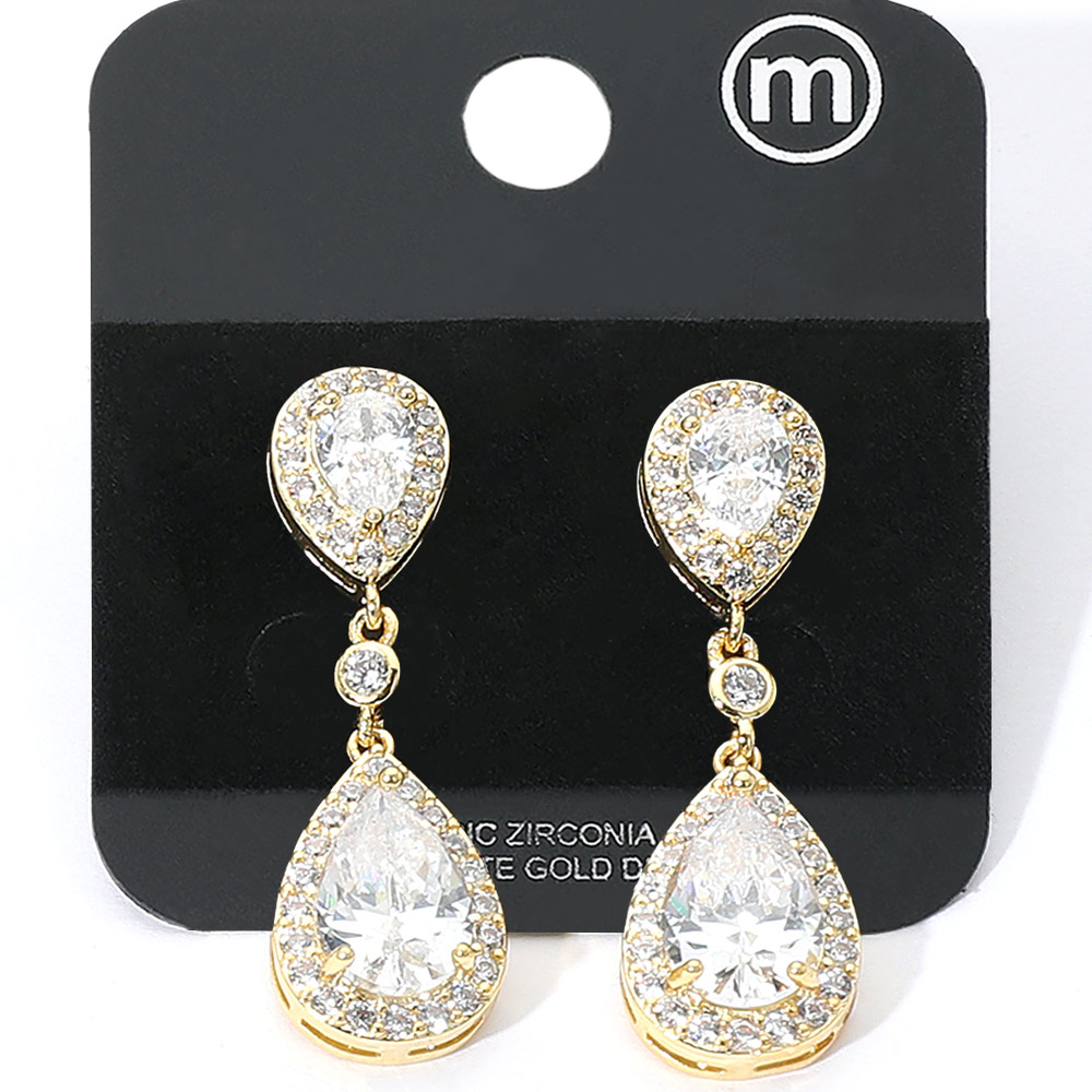 Gold Dipped CZ Teardrop Dangle Evening Earrings