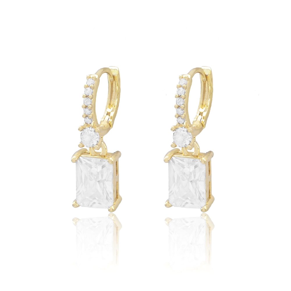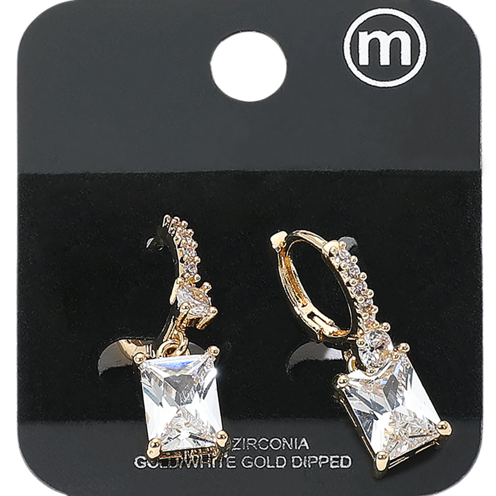 Gold Dipped Rectangle CZ Stone Cluster Dangle Hoop Evening Earrings